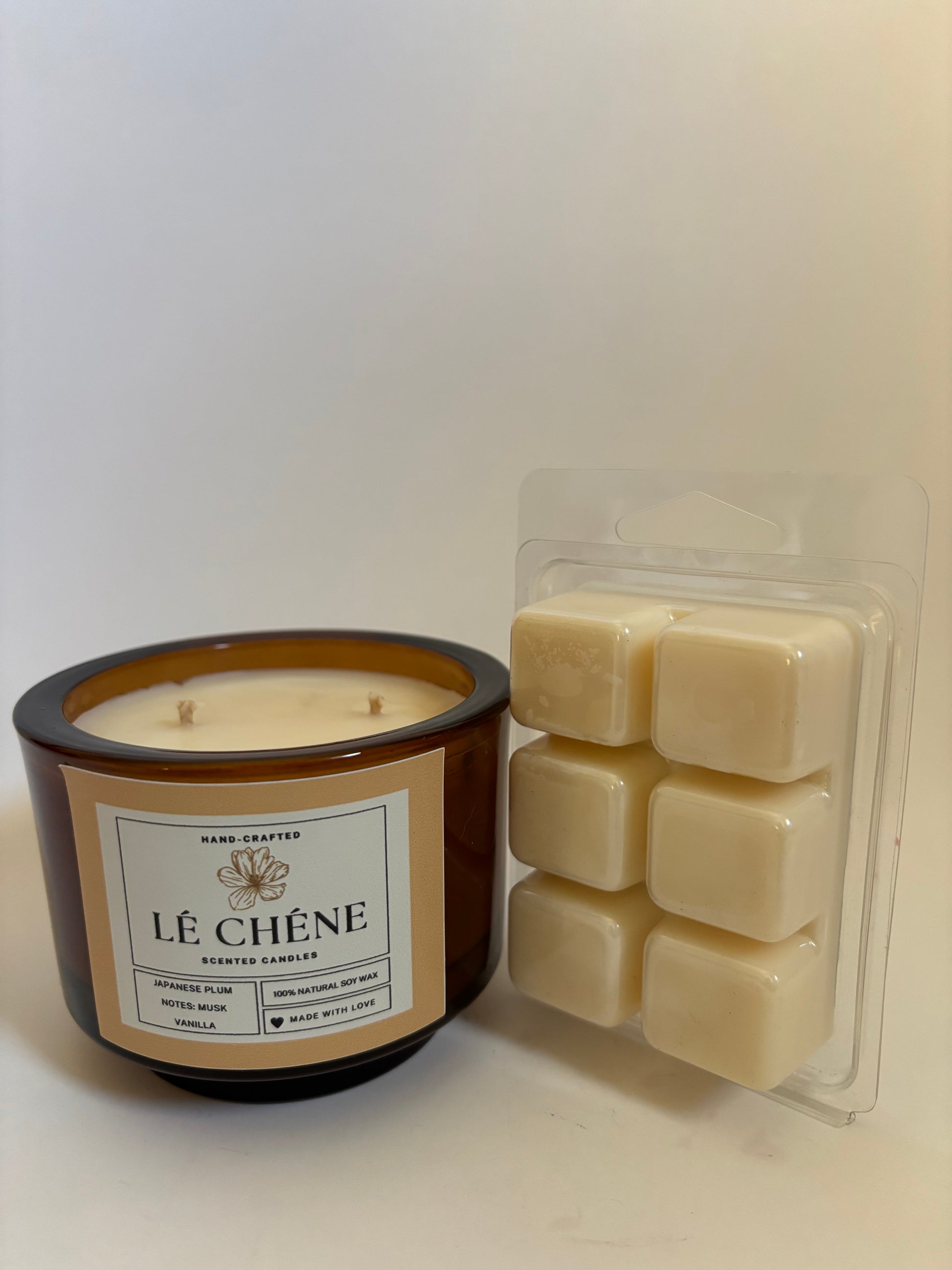 The Birthday Glow Bundle brings together premium aromatics in one elegant package. This expertly curated collection features a Japanese Plum soy candle paired with matching wax melts, creating a cohesive sensory experience. Ideal for those who appreciate quality craftsmanship and the timeless appeal of Japanese plum's delicate, fruity notes.
